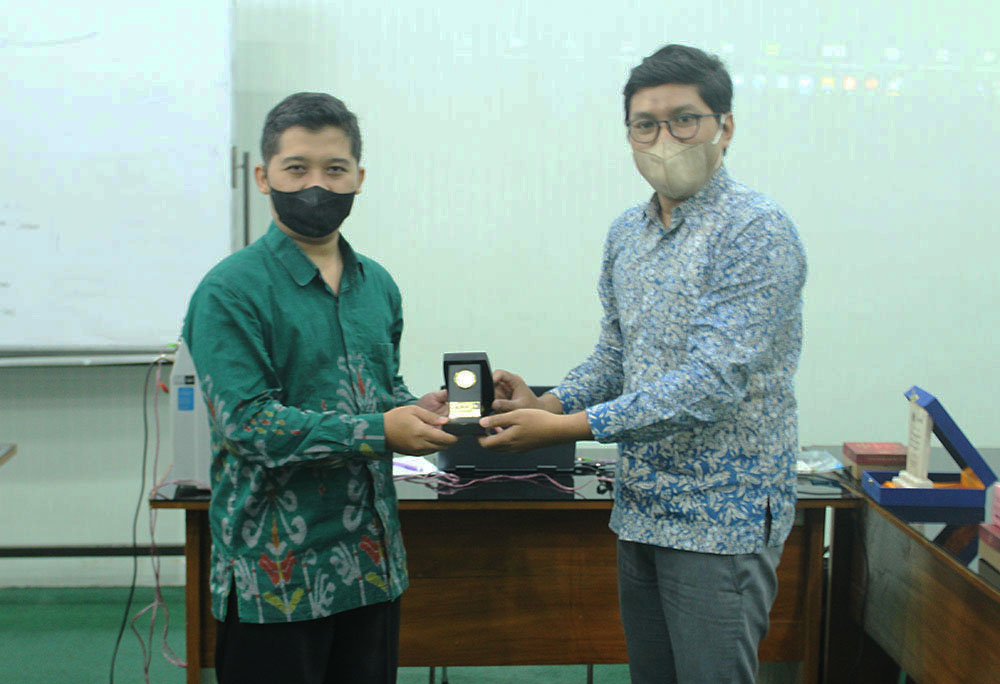 Manajer UPT Bahasa UNISKA Wildan Isna Asyhar, M.Pd bertukar cindera mata dengan Cilacs UII yang diwakili oleh Aditya Suci, S.Pt selaku Kadep Pemasaran