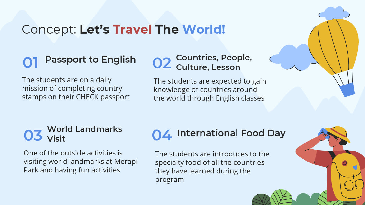 - Mengisi waktu liburan dengan kegiatan positif belajar bahasa Inggris.