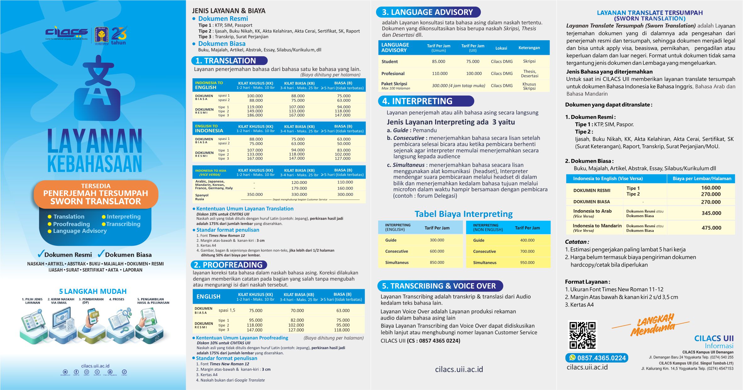 Biaya layanan language advisory ditentukan berdasarkan jenis kategori layanan. Untuk informasi biaya dapat menghubungi customer service :