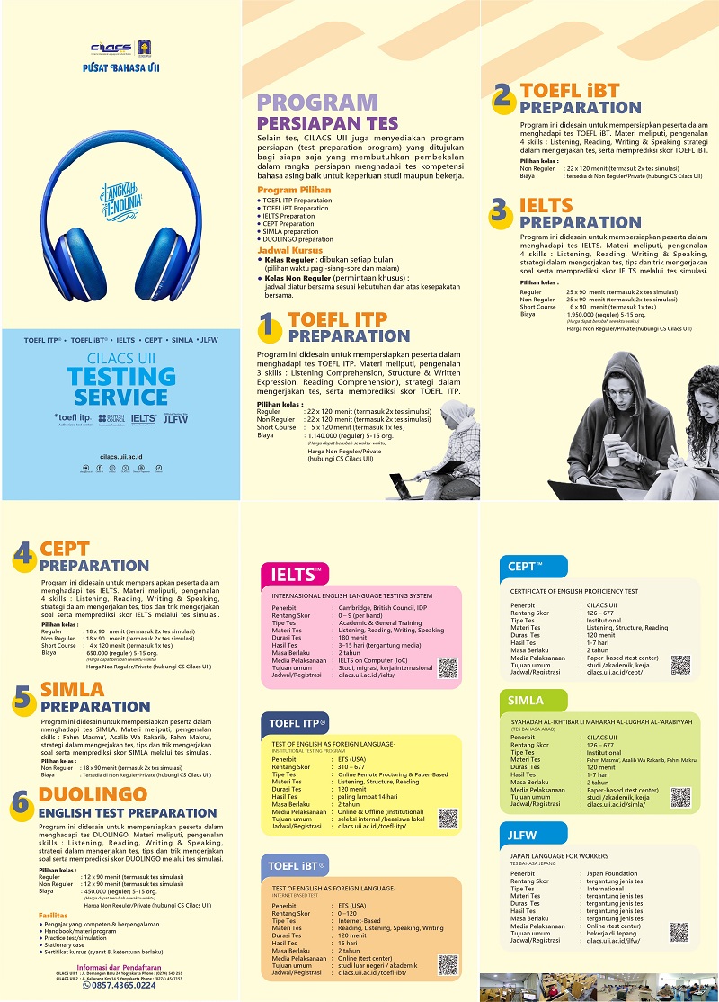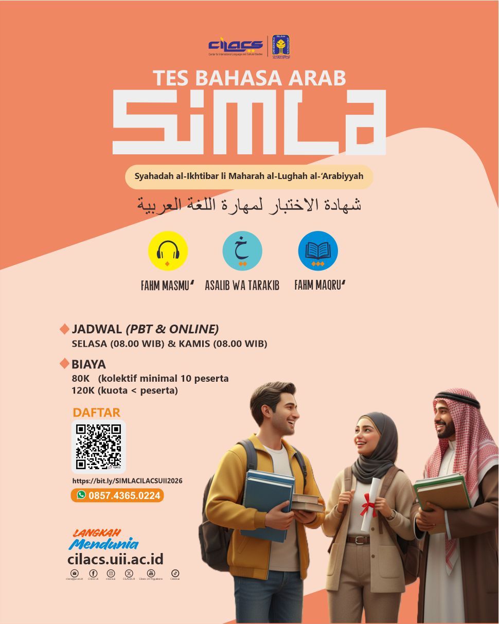 - Tes kompetensi bahasa Arab, bersertifikat resmi Cilacs UII.