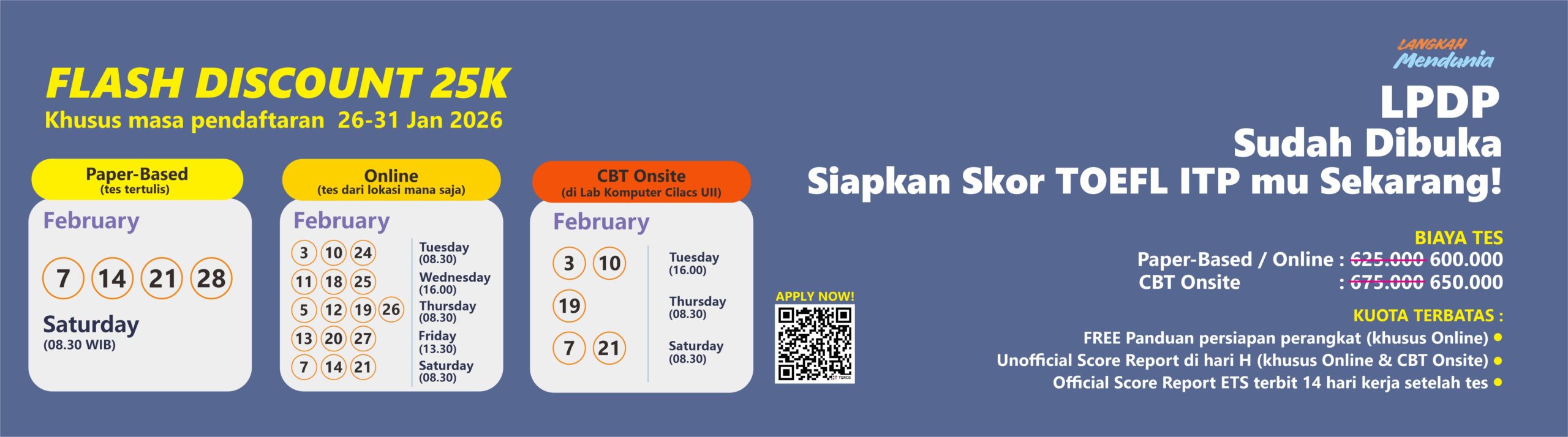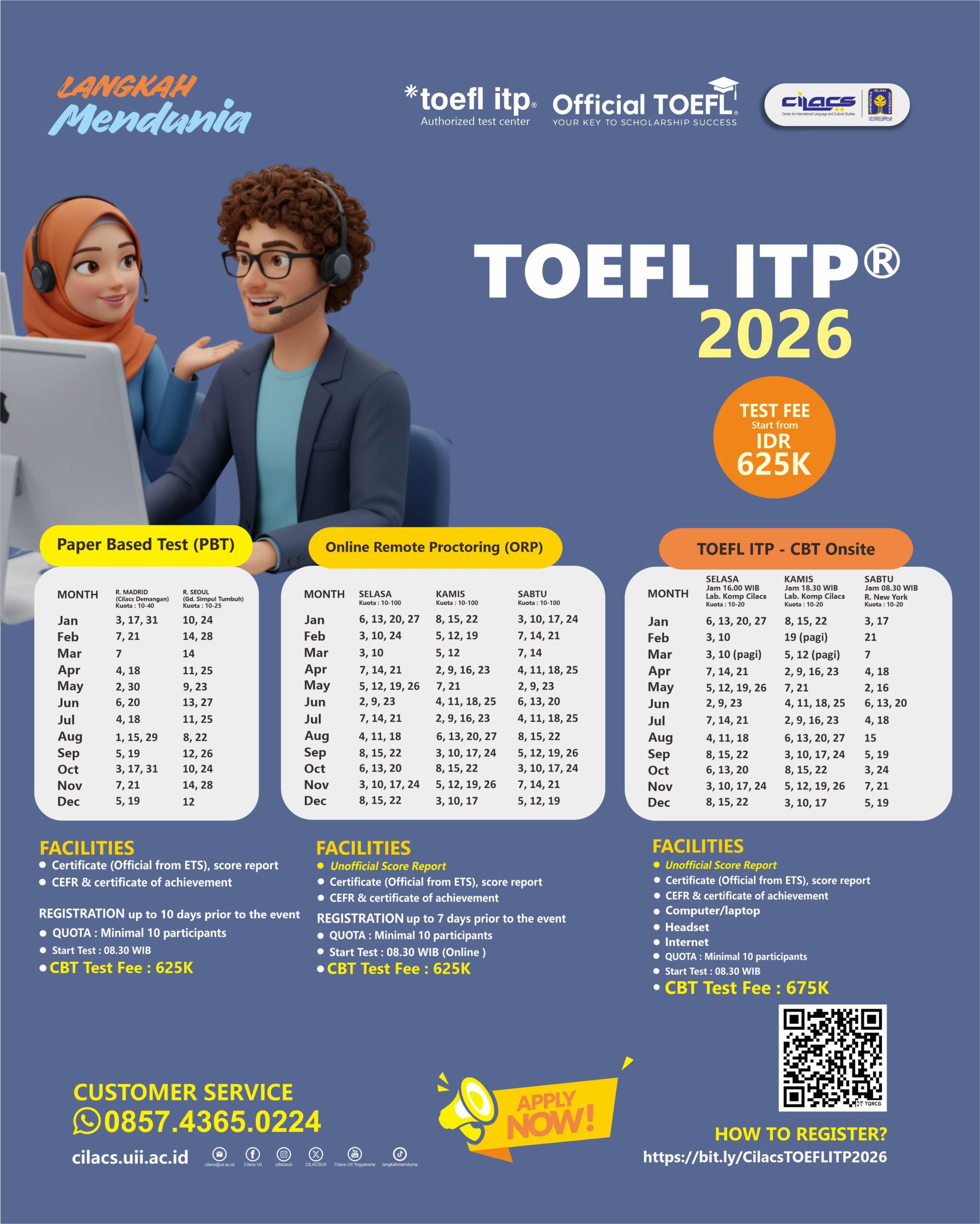 Program persiapan tes CEPT, diampu pengajar berpengalaman Cilacs UII.